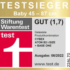 Stiftung Warentest 06/2022: “gut”, Testsieger Baby 45 – 87cm, Lizenznummer 22AL70.