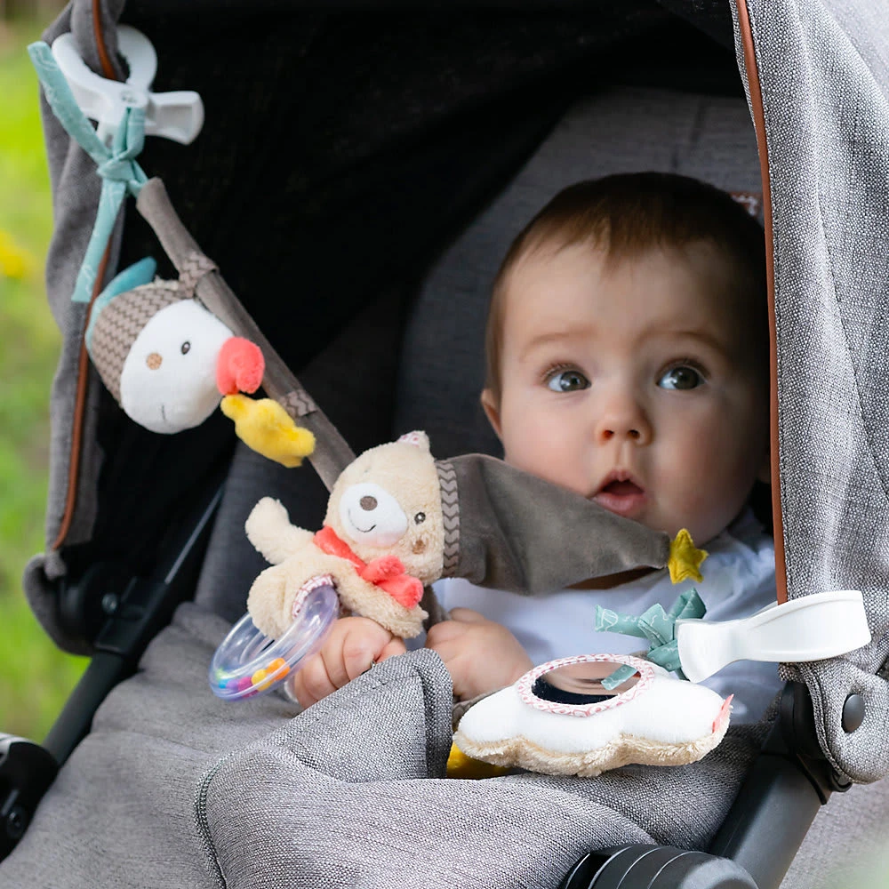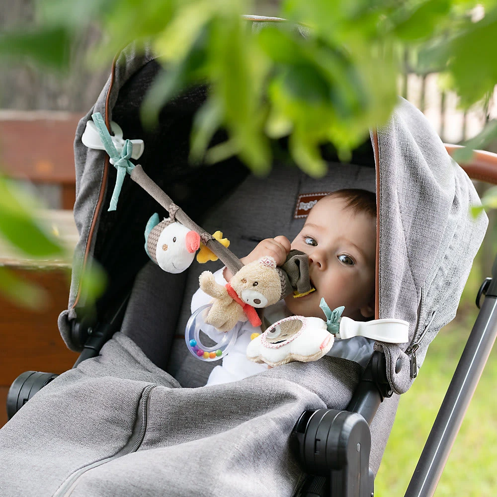 – zum flexiblen Aufhängen an Kinderwagen, Babyschale, Bettchen, Wiege und Spielbogen