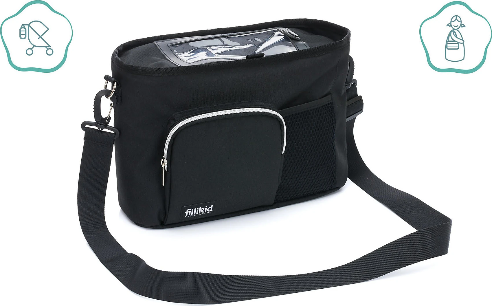 In dem Organizer aus dem Hause fillikid können Sie alles Wichtige verstauen, wenn Sie mit dem Kinderwagen unterwegs sind.