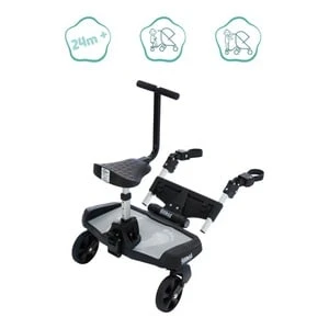 Müdes Geschwisterkind? Dann wird es Zeit für das Filliboard von Fillikid. Auf dem praktischen Buggyboard kann das ältere Kind bequem Platz nehmen und auf dem Kinderwagen mitfahren. Buggyboard Filliboard Wide von Fillikid passend für nahezu alle Kinderwagen und Buggys 3-fach höhenverstellbarer Sitz Transportgurt Gewicht: Buggy Board 2,75 kg, Sitz 1 kg Belastbarkeit: bis 20 kg Maße: 45 x 46 x 22cm Das Filliboard ist eine universelle, um 180 Grad drehbare Befestigung – so passt es an beinahe alle Buggys und Kinderwagen. Die Montage gelingt ganz ohne zusätzliches Werkzeug an den waagrechten und senkrechten Streben. Auf dem praktischen Zusatzsitz kann sich das ältere Geschwisterkind unterwegs bequem ausruhen. Der Sitz lässt sich dreifach in der Höhe verstellen – so passt er für kleinere und größere Kinder bis zu einem Körpergewicht von 20 Kilogramm. Durchdacht: Das Board wird gerade nicht gebraucht? Dann kannst Du es mithilfe des praktischen Transportgurts am Kinderwagengriff befestigen.