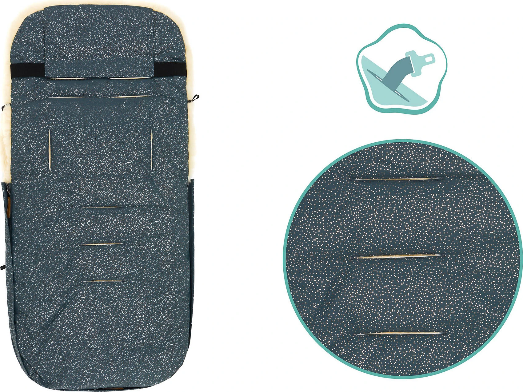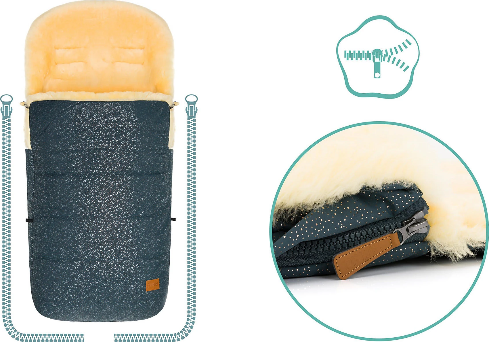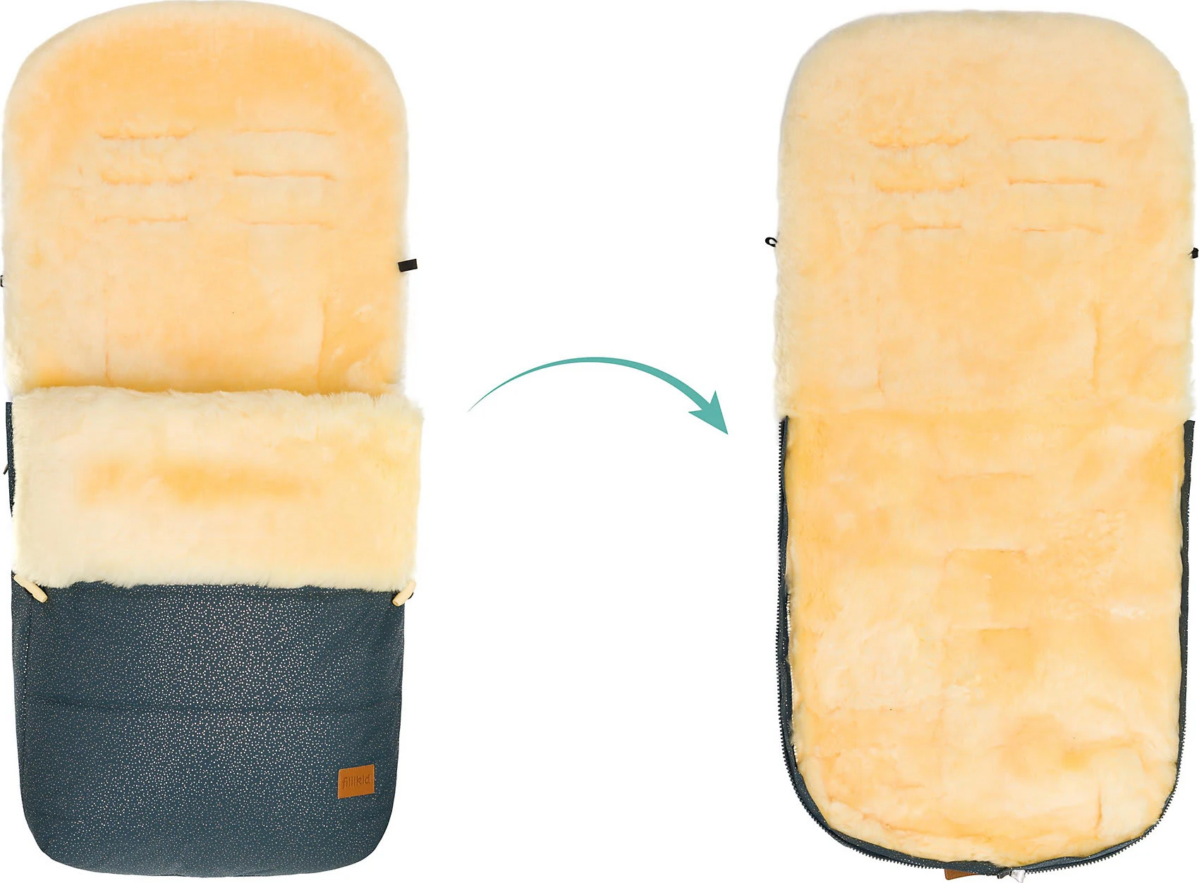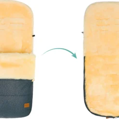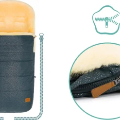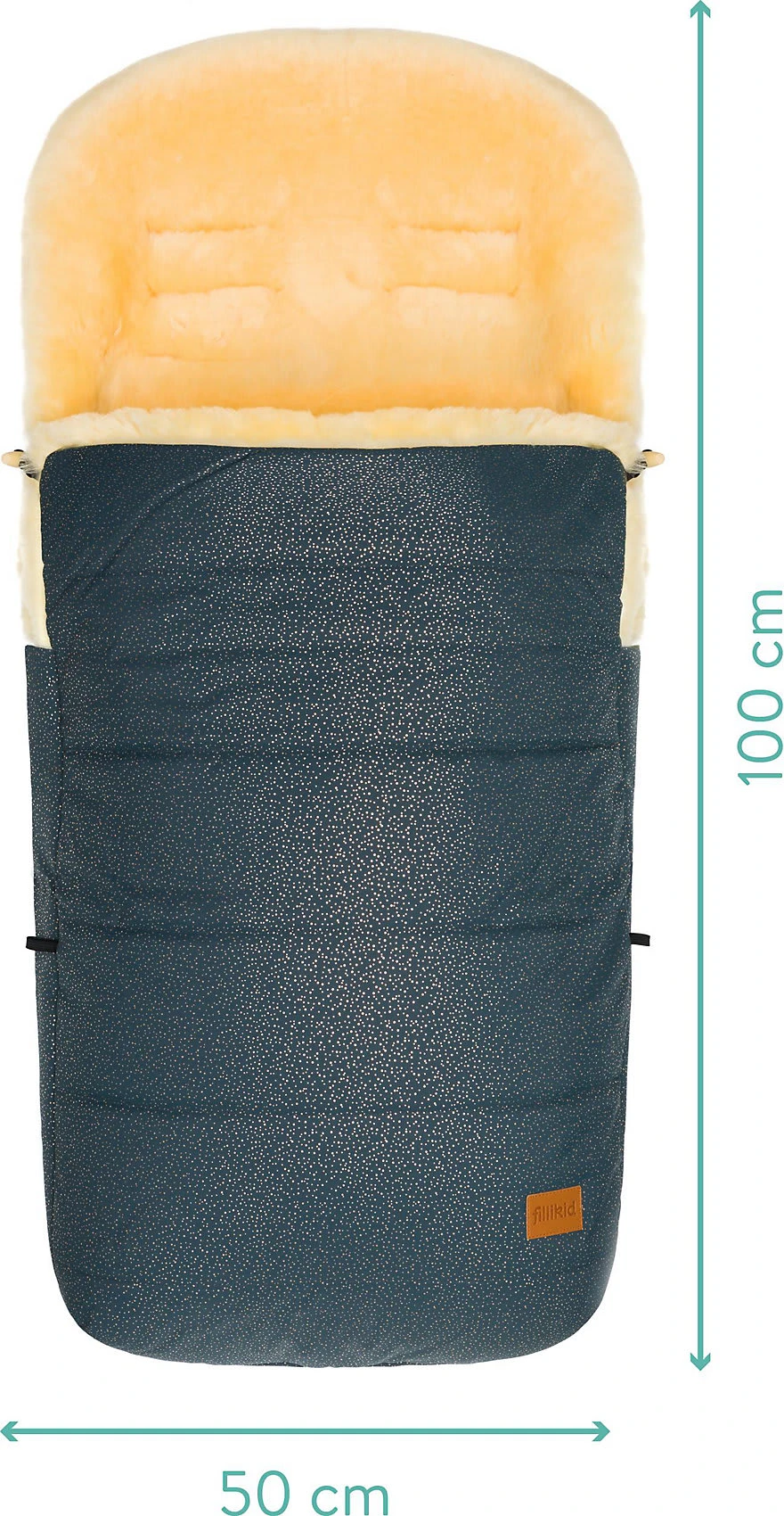 Der Winterfußsack “Bernina” von fillikid sorgt in der kühlen Jahreszeit für kuschelige Wärme. Durch das echte Lammfellfutter ist zugleich für eine natürliche Atmungsaktivität gesorgt. Der Fußsack kann vollständig aufgeklappt und somit auch als weiche Unterlage genutzt werden. Ein flexibles Gummiband an der Rückseite verhindert ein Verrutschen des Winterfußsacks. Durch zwei Holzknebel an den Seiten kann man das Vorderteil hochklappen, um das Kind vor Zugluft zu schützen.
