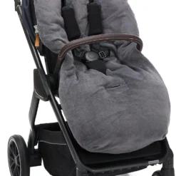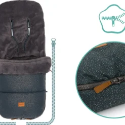 Dank der eingearbeiteten Gurtschlitze kann das Kind auch im Fußsack angeschnallt werden und sorgt somit für zusätzliche Sicherheit.