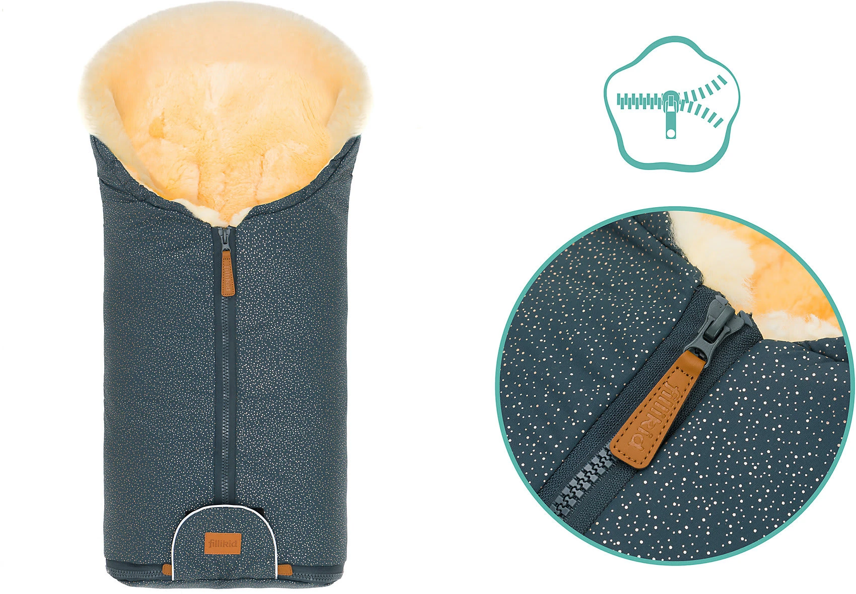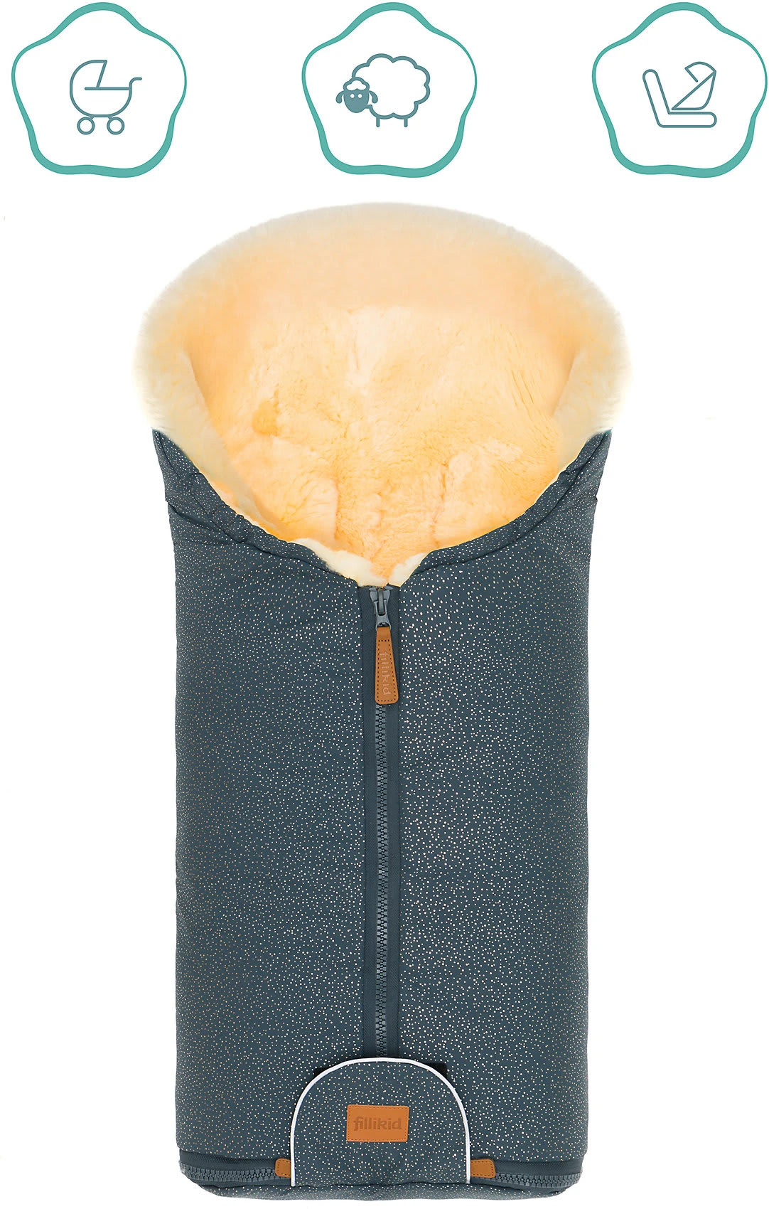Der Winterfußsack “Pamir” von fillikid sorgt in der kühlen Jahreszeit für kuschelige Wärme. Durch das echte Lammfellfutter ist zugleich für eine natürliche Atmungsaktivität gesorgt. Das Fußteil kann der Reißverschluss abgenommen werden, was das Hineinsetzen des Kindes erleichtert.
