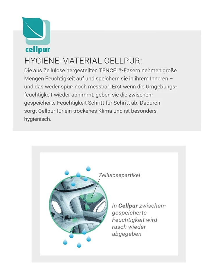 – mit Cellpur-Kern (spezieller, sehr komfortabler Schaum aus Lyocell-Fasern)