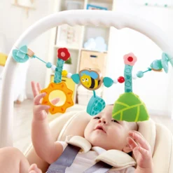 Die Kinderwagenkette Hummelchen von Hape regt den Nachwuchs zum Greifen, Tasten und Erkunden an. Kinderwagenkette Hummelchen von Hape verschiedene Anhänger und Holzperlen Clips zur Befestigung ab Geburt aus Holz, Textil und Kunststoff Die Kinderwagenkette von Hape animiert den Nachwuchs immer wieder aufs Neue, sich ausgiebig mit ihr zu beschäftigen. Mittels praktischer Clips lässt sie sich problemlos am Kinderwagen, Buggy, der Autoschale oder dem Kinderbett befestigen. Die verschiedenen Anhänger und bunten Holzelemente des Designs laden zum gezielten Greifen ein. So ist der Nachwuchs beschäftigt und trainiert spielerisch seine Hand-Auge-Koordination und Motorik.