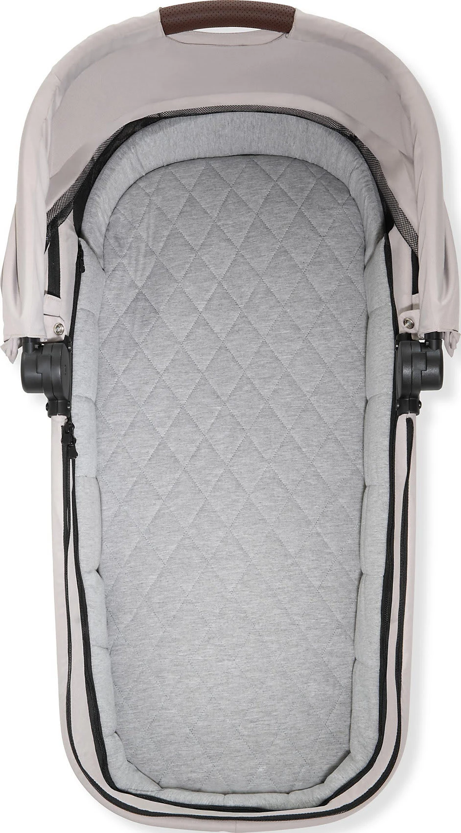 Mit diesem tollen Kinderwagenaufsatz “Walk N Care” aus dem Hause hauck können Babys es sich auch unterwegs so richtig bequem machen! Der Aufsatz bietet eine weiche Matratze sowie zahlreiche Polsterungen, die bei dem Kind für maximalen Komfort sorgen. Die beiden großen Panoramafenster sorgen dabei für optimale Luftzirkulation und dank der Größe ist stets für genug Bewegungsraum gesorgt. Das Drei-Zonen-Verdeck mit extra Sonnenblende bietet an sonnigen Tagen den optimalen Schutz. Für windiges Wetter ist zudem ein praktischer Windschutz mit dabei. Auch für die Eltern bietet dieser Aufsatz jede Menge Vorteile! Die Matratze ist mit einem abnehmbaren, waschbaren Bezug ausgestattet, sodass sich die Liegefläche besonders einfach reinigen lässt. Der Kinderwagenaufsatz wird schnell und mühelos mit Druckknöpfen am Wagen befestigt und lässt sich ebenso leicht wieder abnehmen. Soll der Aufsatz mitgenommen oder verstaut werden, kann man ihn platzsparend zusammenfalten.