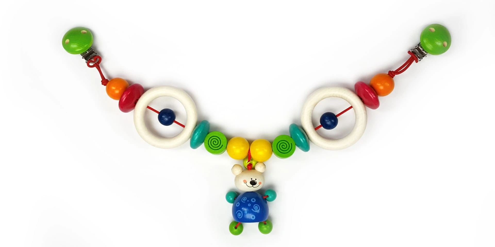 wunderschöne farbenfrohe Kinderwagenkette aus Buchenholzelementen für Kinderwagen oder Bettchen