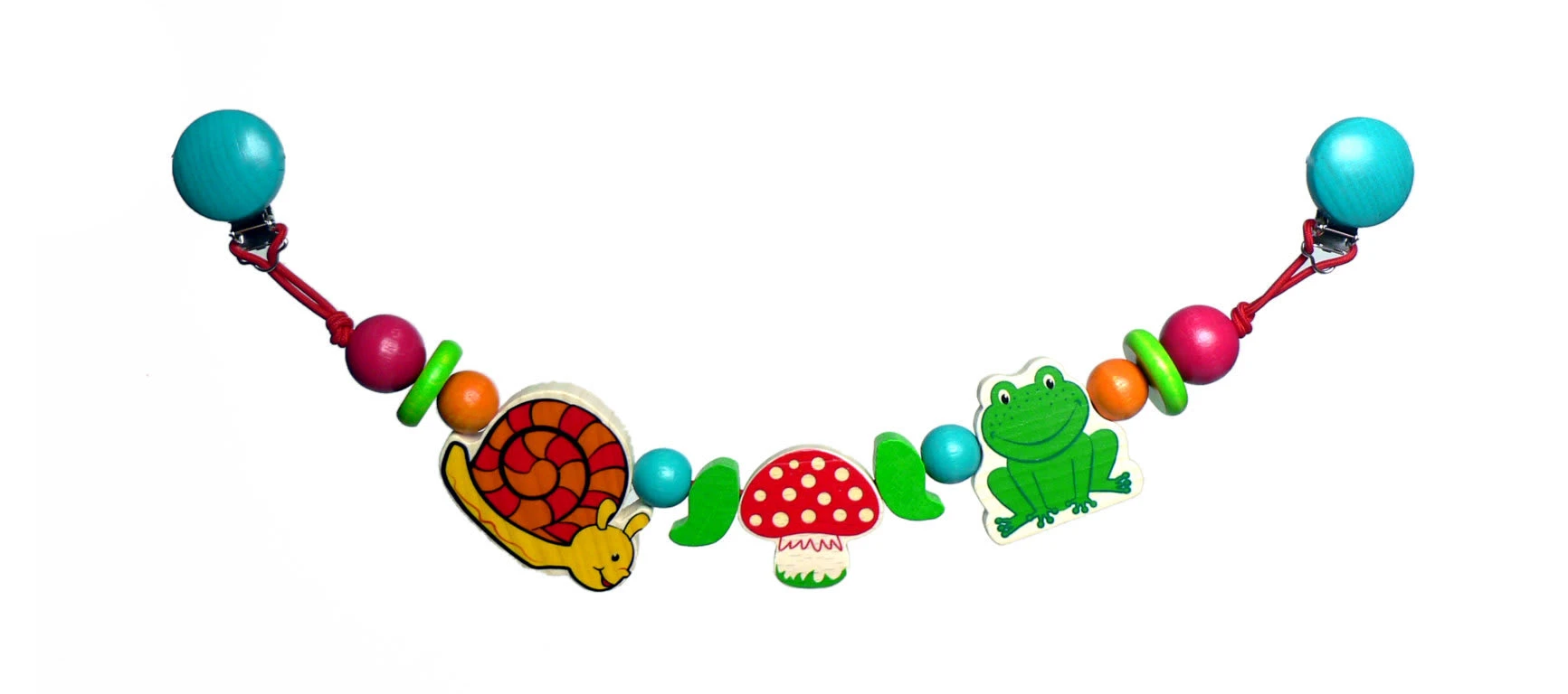 wunderschöne farbenfrohe Kinderwagenkette aus Buchenholzelementen für Kinderwagen oder Bettchen