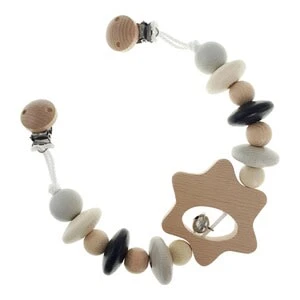 Die Kinderwagenkette aus Holz von HESS sorgt für Unterhaltung, wenn das Baby im Kinderwagen spazieren gefahren wird. Kinderwagenkette von HESS Perlen und Ring aus Holz, mit Glöckchen Clips zur Befestigung 49(L) x 3,5(B) x 7(H) cm ab Geburt aus heimischen Hölzern Made in Germany Die Kette von HESS wird am Kinderwagen angebracht. Sie bietet dem Nachwuchs bei einer Ausfahrt jede Menge Abwechslung. Die verschiedenen, bunten Holzperlen und der Ring in der Mitte lassen sich von kleinen Kinderhänden leicht greifen und festhalten. Das Glöckchen bimmelt lustig und macht das Baby zusätzlich neugierig. Die Aufmerksamkeit wird immer wieder geweckt, sodass der Nachwuchs mit Spaß seine Motorik trainiert. Die Elemente der Kette sind aus heimischen Hölzern gefertigt und in Deutschland hergestellt.