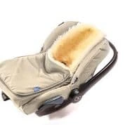Temperaturausgleichender Lammfell Autoschalen Fußsack Maxi wie Maxi-Cosi. Dank abnehmbarem Oberteil für jede Jahreszeit geeignet.