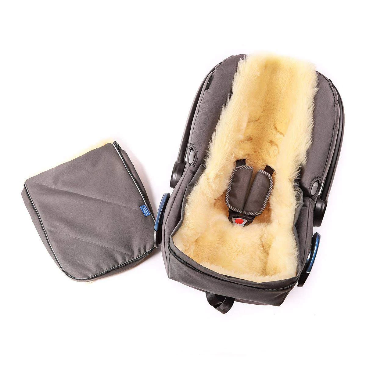 Ab Geburt bis 12 Monate Speziell für Babyschalen und Autositze angefertigter Lammfell-Fußsack mit 3-facher Gurt-Höhenverstellung