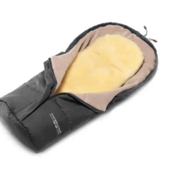 Der Kopfbereich lässt sich zur Mumienform zusammenziehen, für extra Schutz gegen Wind und Wetter. Durch den mittig angebrachten Reißverschluss lässt sich der temperaturausgleichende LENI Lammfellfußsack in eine riesige Liege- oder Wickelfläche umwandeln.