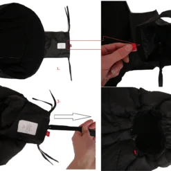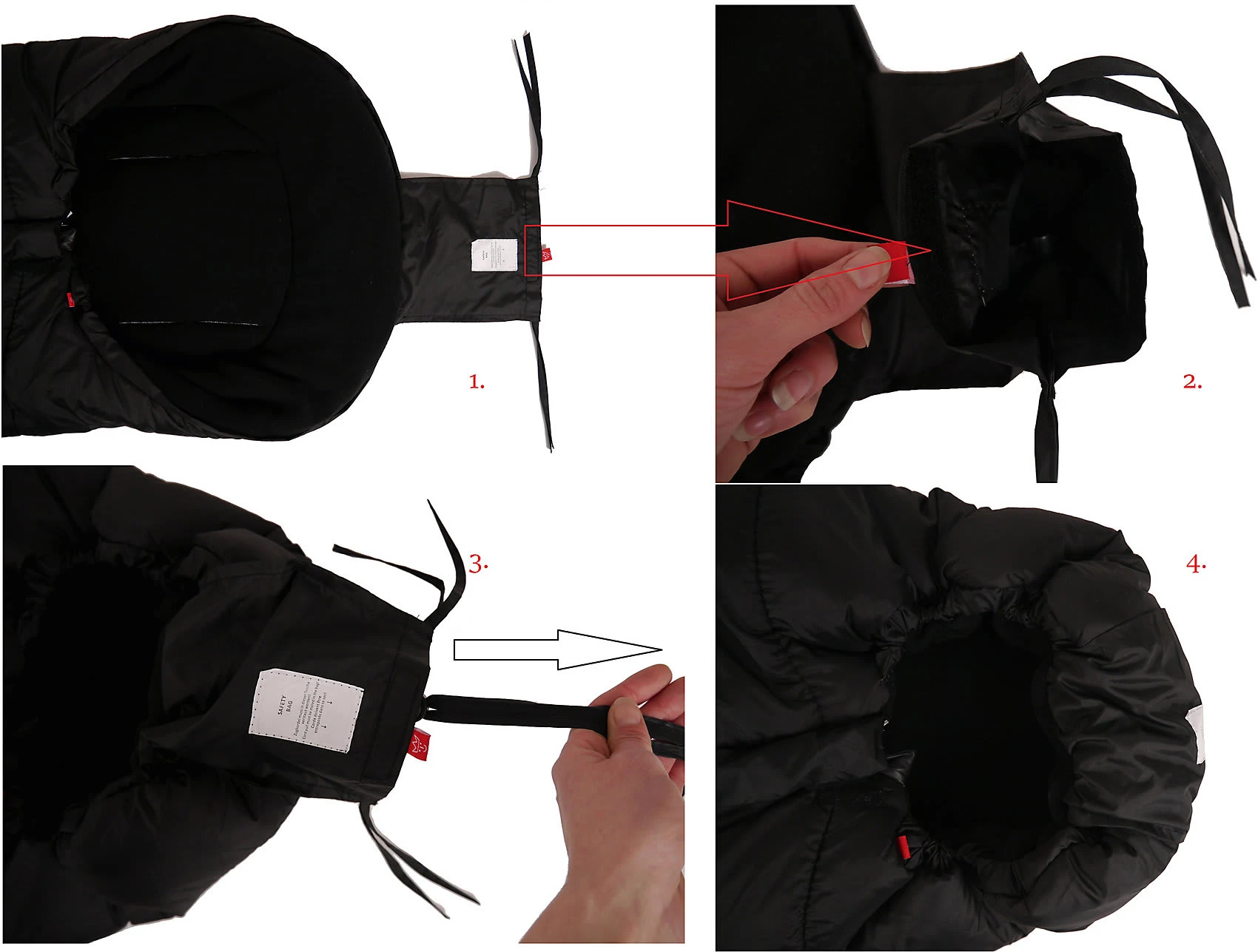Die Detailsbilder zeigen den Fußsack in einer anderen Farbe. Zur Auslieferung kommt die Farbe schwarz.