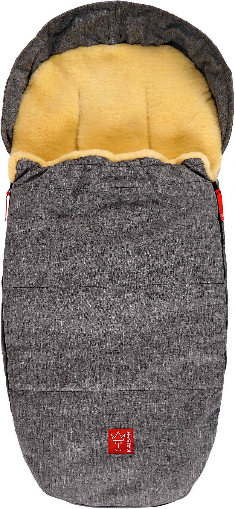 Schöner Fußsack mit kuscheliger Lammfelleinlage und 2-Wege Rundum-Reißverschluss. In dem Fußsack ist ihr Kind vor Kälte geschützt. Der beschichtete Oberstoff ist schmutz- und wasserabweisend und atmungsaktiv. Das Oberteil ist abnehmbar und das Unterteil kann separat auch als Unterlage verwendet werden. Der Kopfbereich lässt sich zur Mumienform zusammen ziehen.