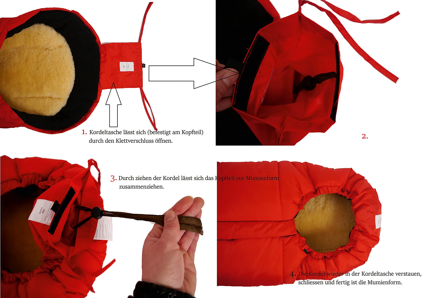 Die Detailsbilder zeigen den Fußsack in anderen Farben. Zur Auslieferung kommt die Farbe sand.