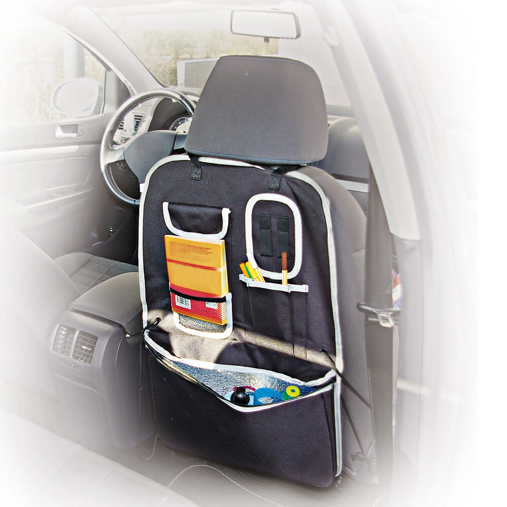 Sie bietet zahlreiche Fächer für Spielzeug, Snacks und Getränke und lässt sich einfach an der Rückenlehne befestigen. Besonders praktisch ist die Tasche mit Kühlfunktion, in der Lebensmittel auch auf längeren Autofahrten aufbewahrt werden können.