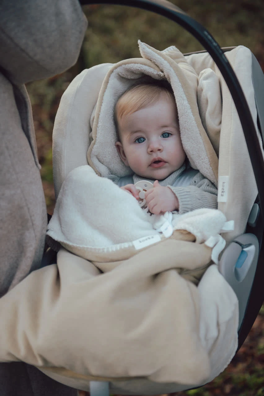 Dieser Fußsack mit Teddyfutter passt in einen 0+ Autositz mit Drei- oder Fünfpunktgurt und hält dein Kind warm, wenn du in den kälteren Monaten rausgehst. Für zusätzliche Wärme und Komfort kannst du mit Hilfe des Klettverschlusses an der Oberseite eine Kapuze bilden. Der Fußsack lässt sich leicht mit einem Reißverschluss öffnen und das Oberteil kann umgedreht und mit einer Kordel befestigt werden. So kann dein Kind bequem sitzen und stylisch unterwegs sein!