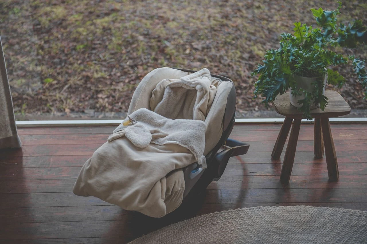 – Warmer Teddy Fußsack mit Kapuze für den Autositz 0+
