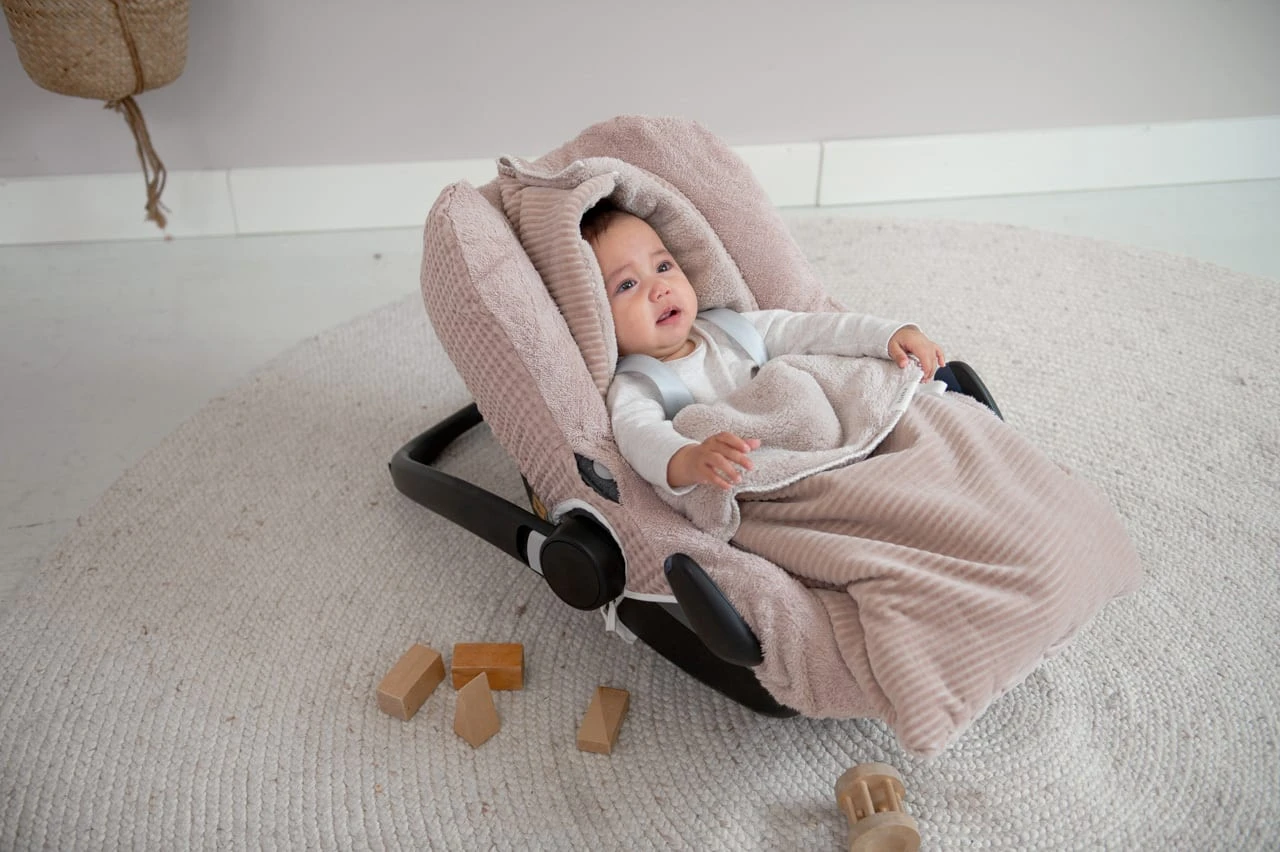 Dieser Fußsack mit Teddyfutter passt in einen 0+ Autositz mit Drei- oder Fünfpunktgurt und hält dein Kind warm, wenn du in den kälteren Monaten rausgehst. Für zusätzliche Wärme und Komfort kannst du mit Hilfe des Klettverschlusses an der Oberseite eine Kapuze bilden. Der Fußsack lässt sich leicht mit einem Reißverschluss öffnen und das Oberteil kann umgedreht und mit einer Kordel befestigt werden. So kann dein Kind bequem sitzen und stylisch unterwegs sein!