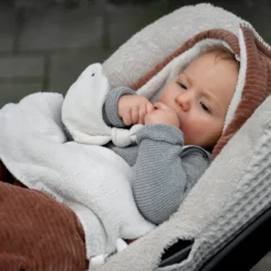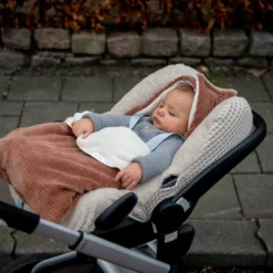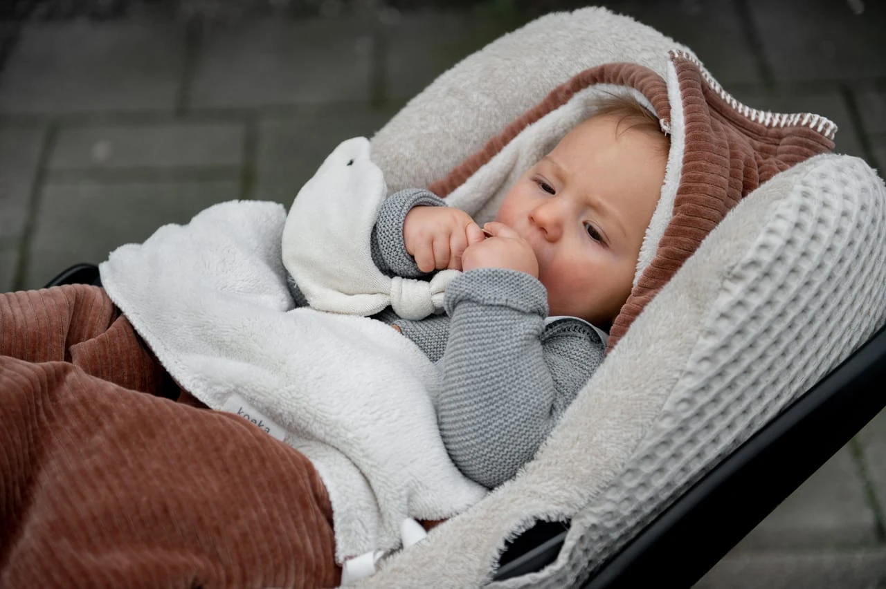 Dieser Fußsack mit Teddyfutter passt in einen 0+ Autositz mit Drei- oder Fünfpunktgurt und hält dein Kind warm, wenn du in den kälteren Monaten rausgehst. Für zusätzliche Wärme und Komfort kannst du mit Hilfe des Klettverschlusses an der Oberseite eine Kapuze bilden. Der Fußsack lässt sich leicht mit einem Reißverschluss öffnen und das Oberteil kann umgedreht und mit einer Kordel befestigt werden. So kann dein Kind bequem sitzen und stylisch unterwegs sein!