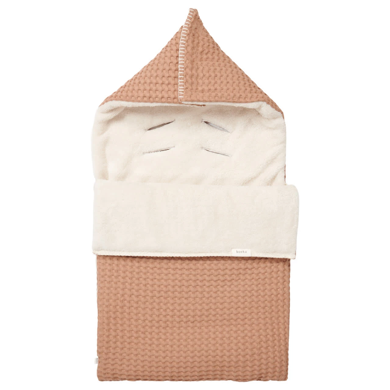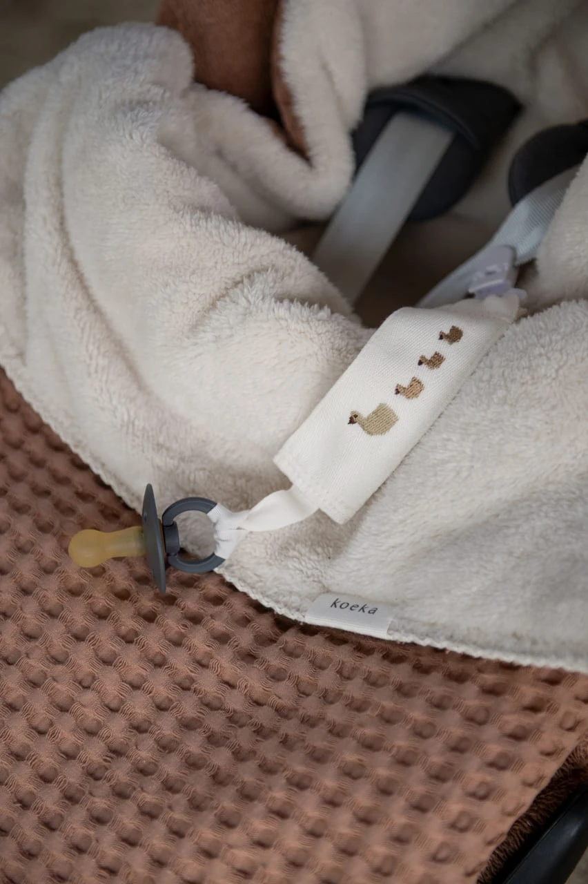 – Der robuste Baumwollstoff mit Waffel-Relief ist eine moderne Version der Retro-Waffeldecken aus den Siebzigern. Aufgrund des weichen Teddyfutters empfehlen wir die Verwendung in den kälteren Monaten.